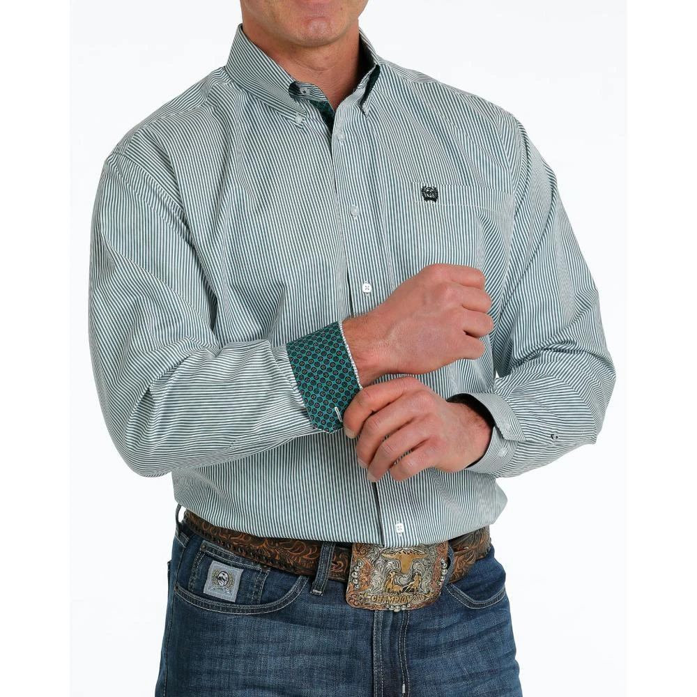 Cinch Mens Stripe Tencel Button Down Long Sleeve Shirt