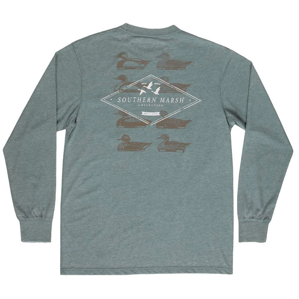 Make your mark this duck season in our long sleeve Decoy Stamp SEAWASH™ tee. Made with our specially treated fabric, it’s been heavy garment washed for softness and comfort. The material is meant to fade over time to make it look like it has been your favorite long sleeve tee, season after season. The breathable, lightweight fabric makes it airy and comfortable, and it’s finished with a front pocket featuring our Southern Marsh mallard silhouette logo.