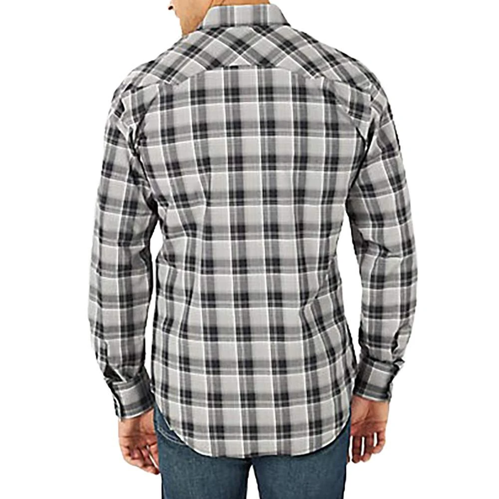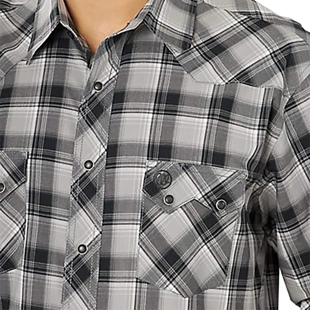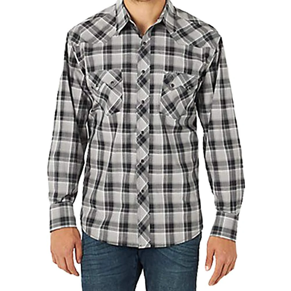 Paying tribute to our Western roots, the men’s Wrangler Retro® long-sleeve sawtooth snap pocket western shirt gives the classic style you know a modern look and feel. It comes with all the same details you love, including a spread collar, pointed yokes, and two sawtooth snap flap pockets with embroidery to add a bold element to every outfit. Plus, it features a modern fit and it’s crafted from cotton for comfort and long-lasting durability, no matter how often you wear it. Wear it with a pair of Wrangler Retro bootcut jeans to complete the look for any occasion.